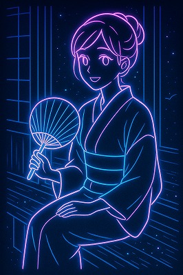23 neon sign style, glowing outlines ネオンサイン風、光る輪郭線