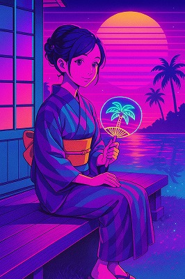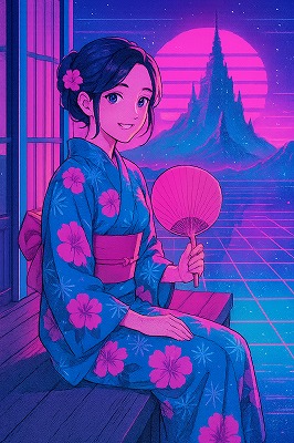 72 synthwave style, retro-futuristic colors シンセウェーブ風、レトロ未来感